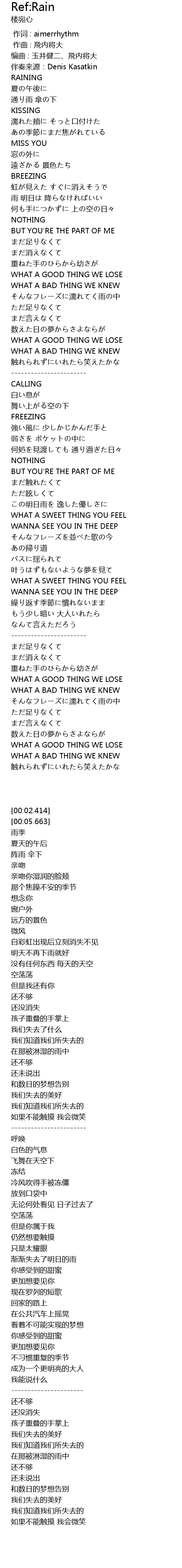 | [00:05.663] | 伴奏来源:Denis Kasatkin |