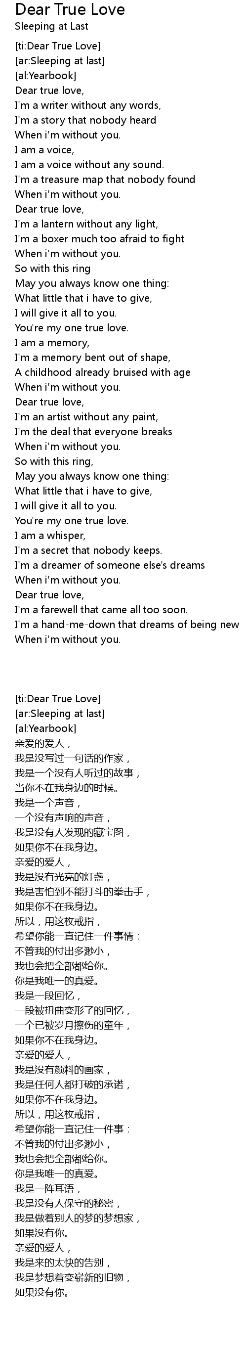 [ti:Dear True Love] |