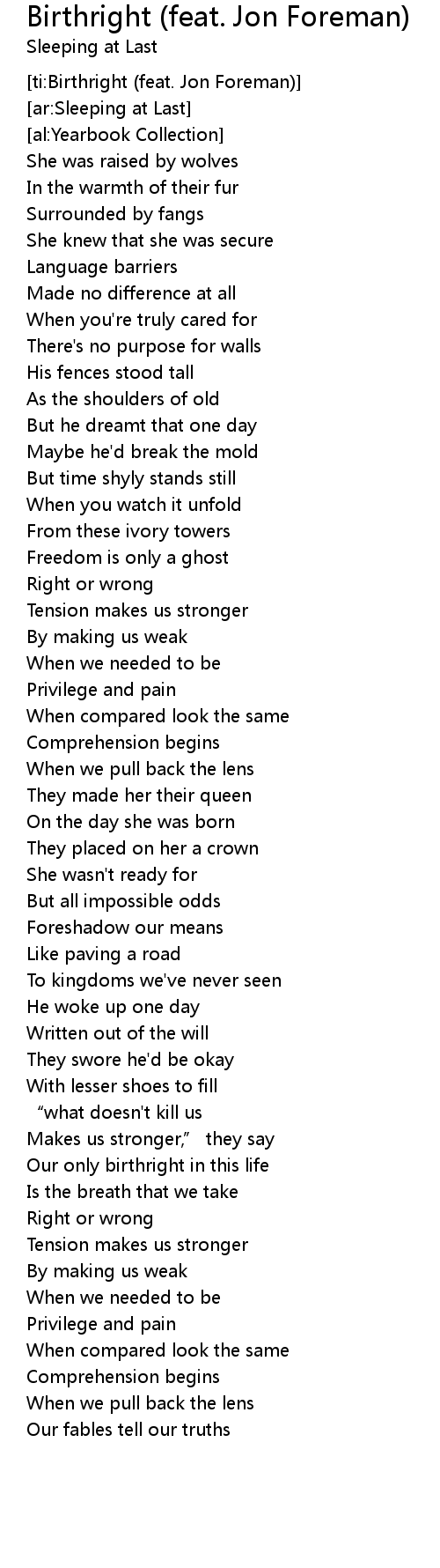 | [ti:Birthright (feat. Jon Foreman)] | |