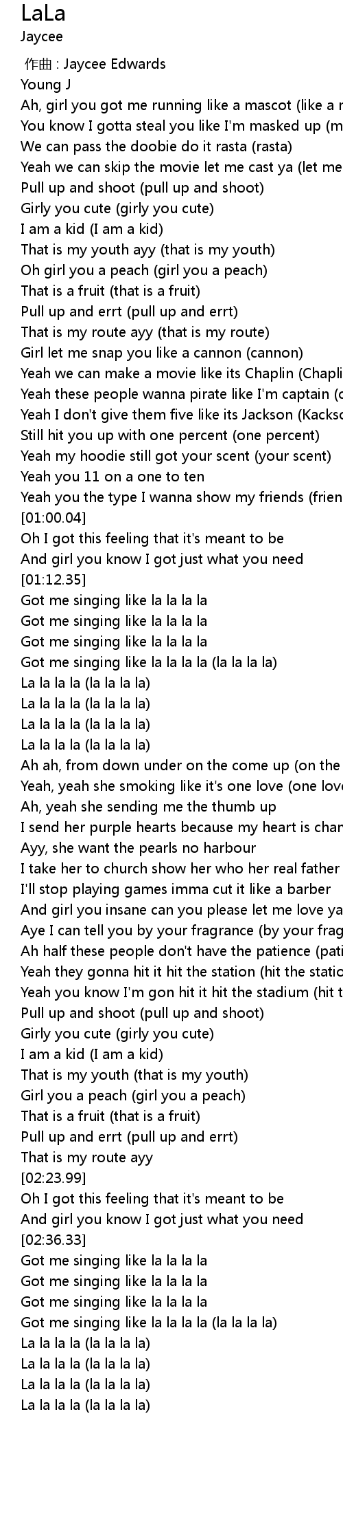 | [01:21.30] | Got me singing like la la la la (la la la la) |