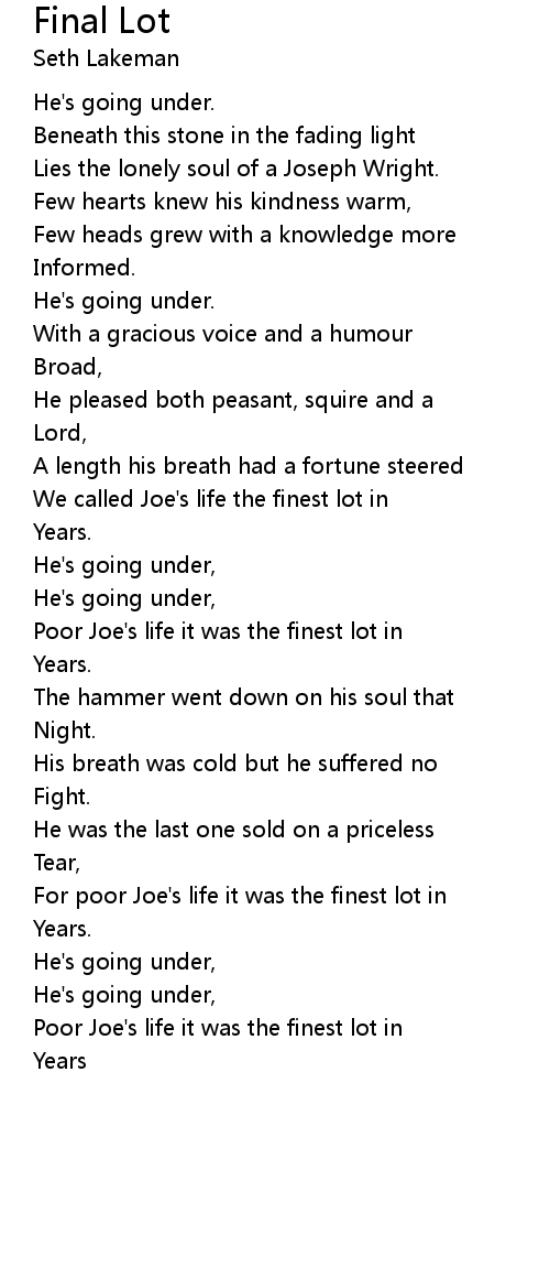 For poor Joe's life it was the finest lot in |