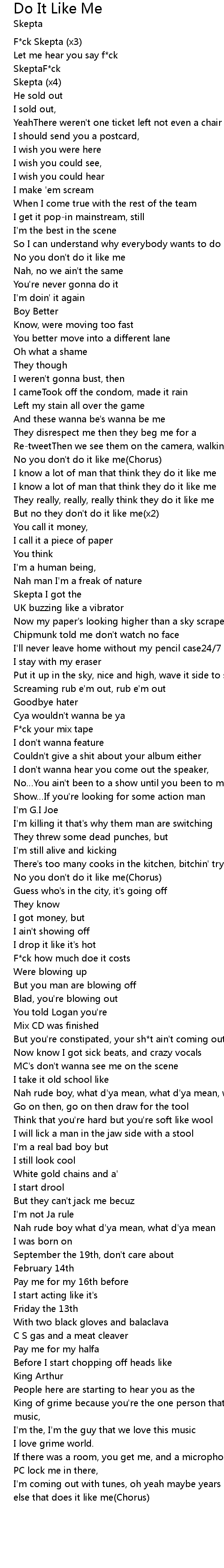 | But no they don' t do it like me x2 | |