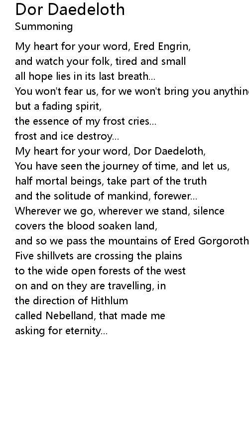My heart for your word, Dor Daedeloth, |
