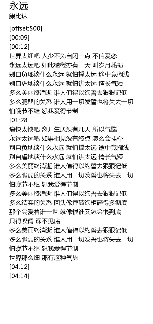 | [02:01] | 别自虐地谈什么永远 就怕讲太远 情长气短 |