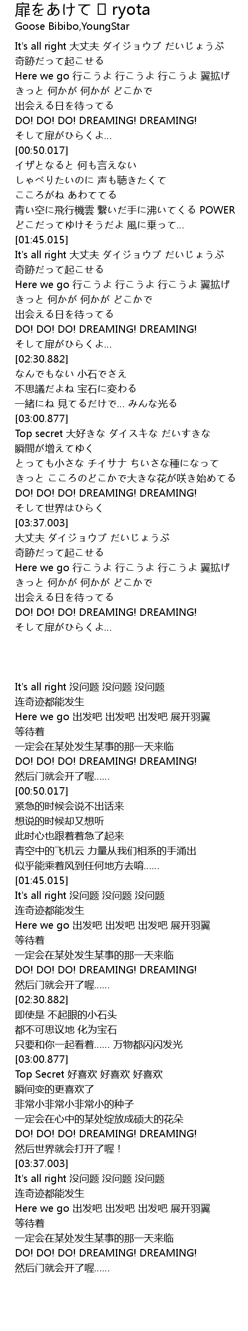| [04:01.695] | DO! DO! DO! DREAMING! DREAMING! |
