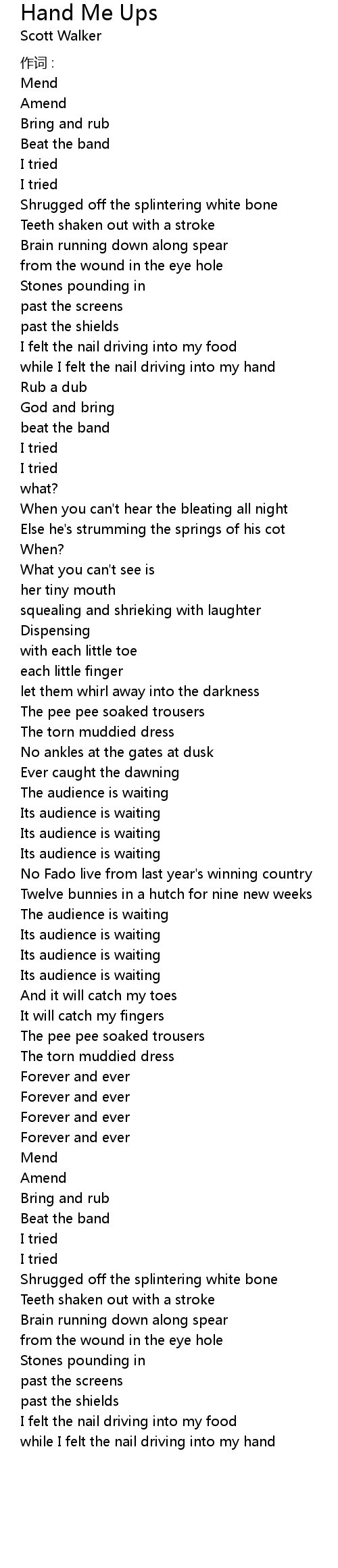 | Song | Hand Me Ups |