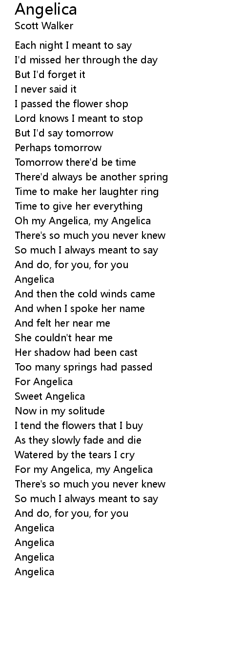 Oh my Angelica, my Angelica |