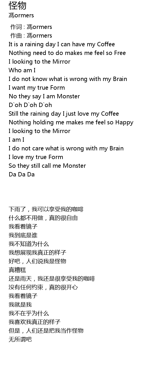 | [01:07.00] | No they say I am Monster |