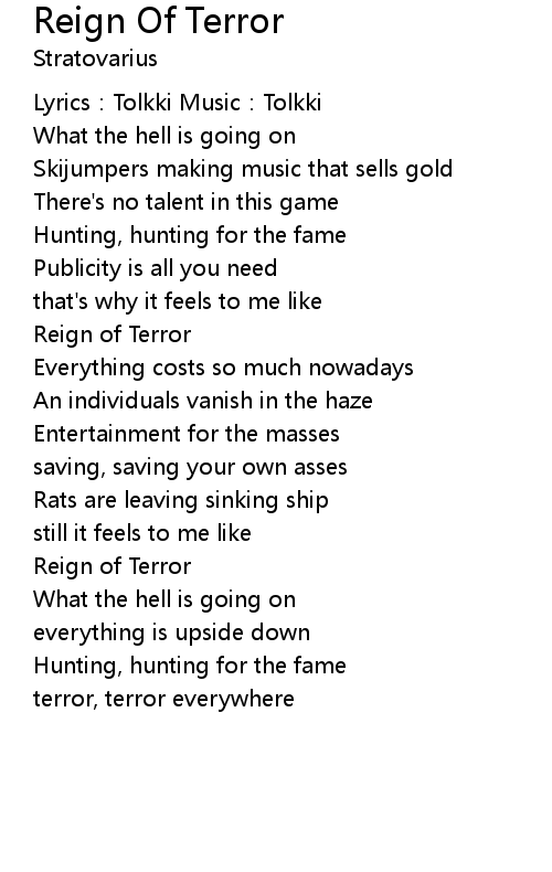 | Song | Reign Of Terror |