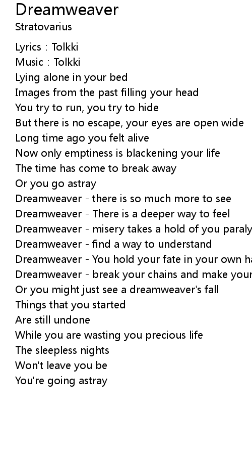 | Dreamweaver misery takes a hold of you paralyzes your soul | |