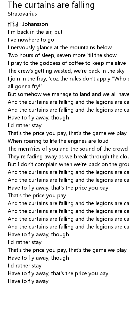 | Song | The curtains are falling |