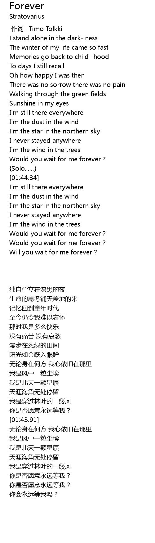 | [02:41.96] | Would you wait for me forever ? |