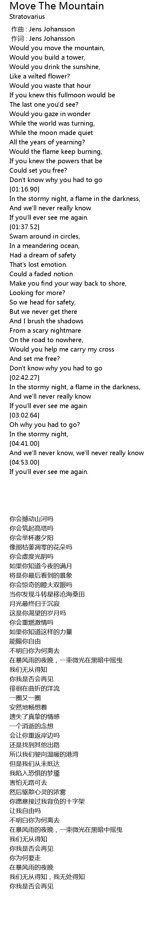 | [00:01.00] | 作词 : Jens Johansson |