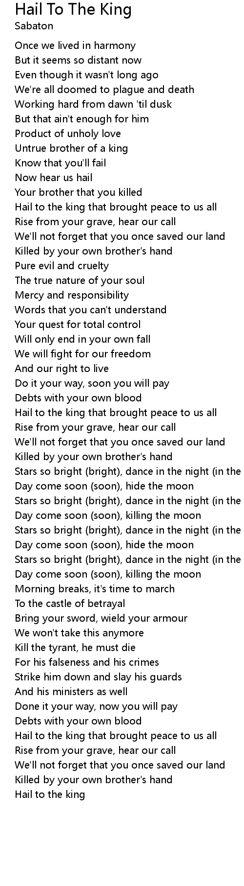 | Hail to the king that brought peace to us all | |