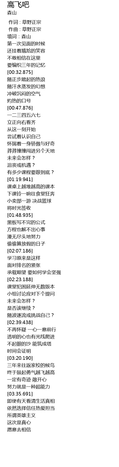 | [03:24.690] | zhōng yú gǔ qǐ yǒng qì yuè fēi yuè gāo |