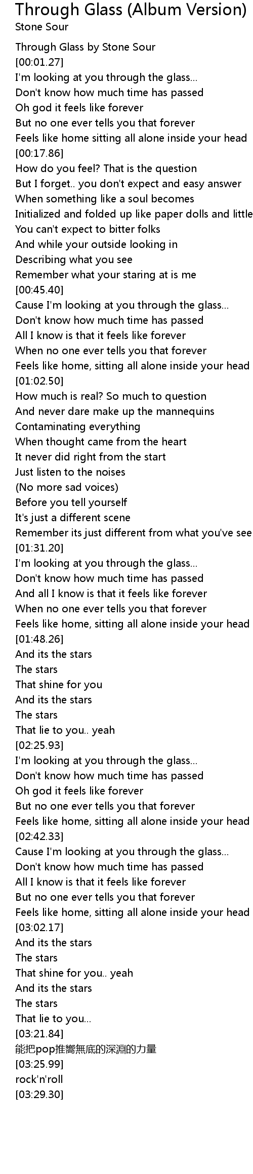 | [00:01.03] | Through Glass by Stone Sour |