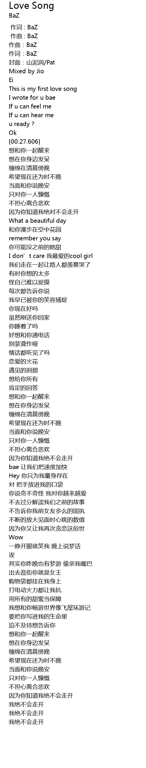 | [00:00.690] | 作词:BaZ |