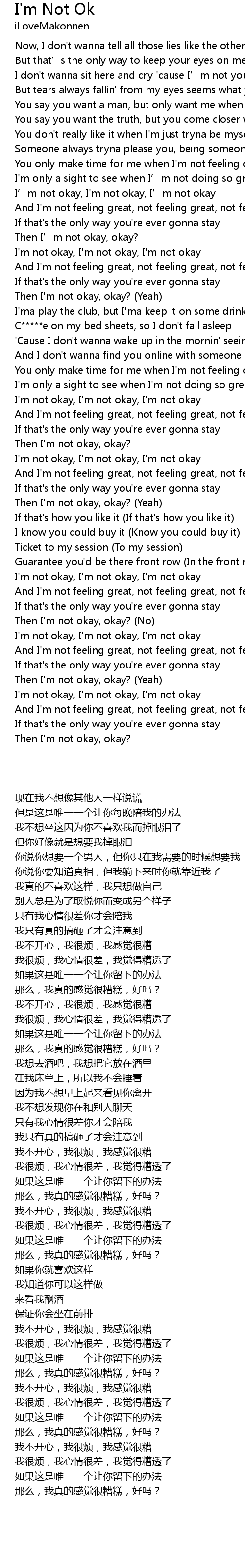 | [02:58.64] | I' m not okay, I' m not okay, I' m not okay |