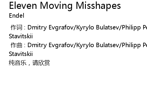 | [00:01.000] | zuo qu : Dmitry Evgrafov Kyrylo Bulatsev Philipp Petrenko Oleg Stavitskii |