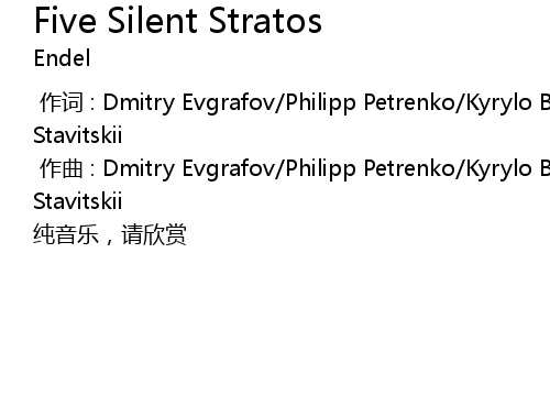 | [00:01.000] | zuò qǔ : Dmitry Evgrafov Philipp Petrenko Kyrylo Bulatsev Oleg Stavitskii |