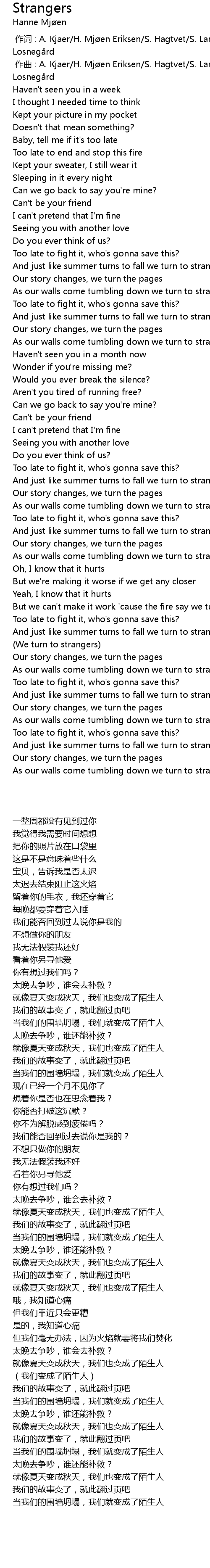 | [02:54.17] | As our walls come tumbling down we turn to strangers |