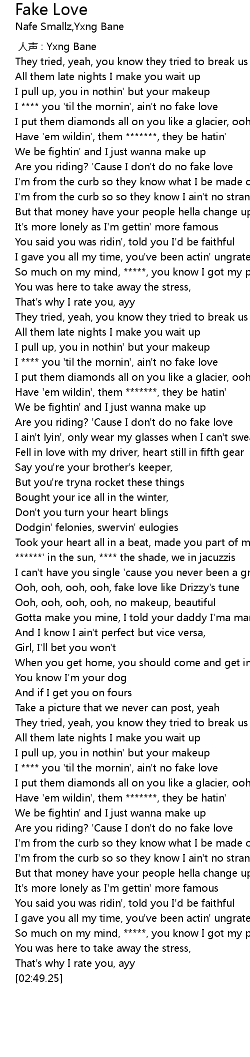 | [01:41.57] | Ooh, ooh, ooh, ooh, fake love like Drizzy's tune |