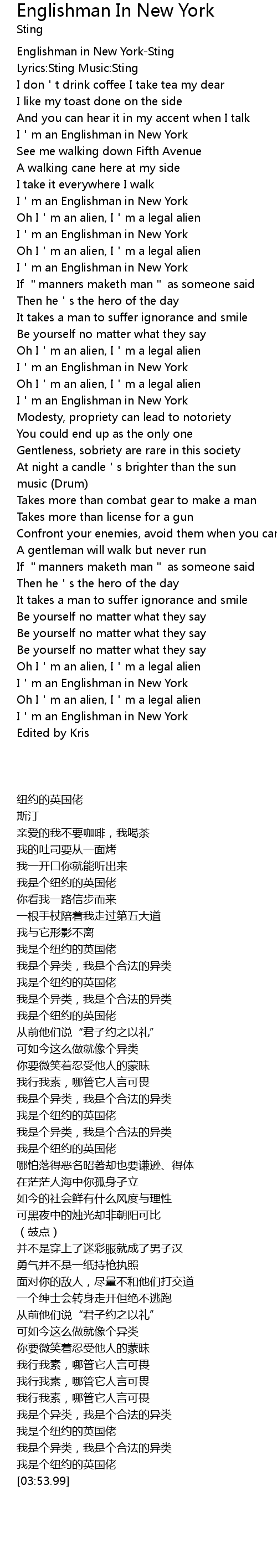 | [00:15.94] | Lyrics:Sting Music:Sting |