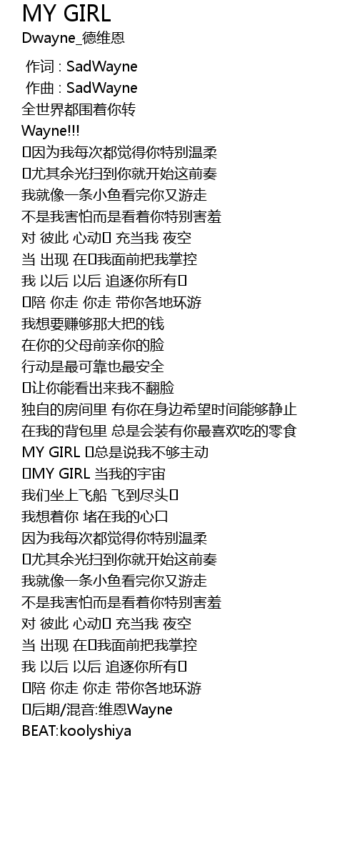 | [00:58.916] | MY GIRL zong shi shuo wo bu gou zhu dong |