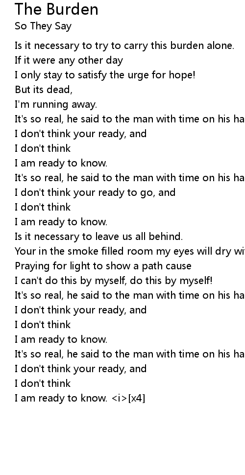 Is it necessary to try to carry this burden alone. |