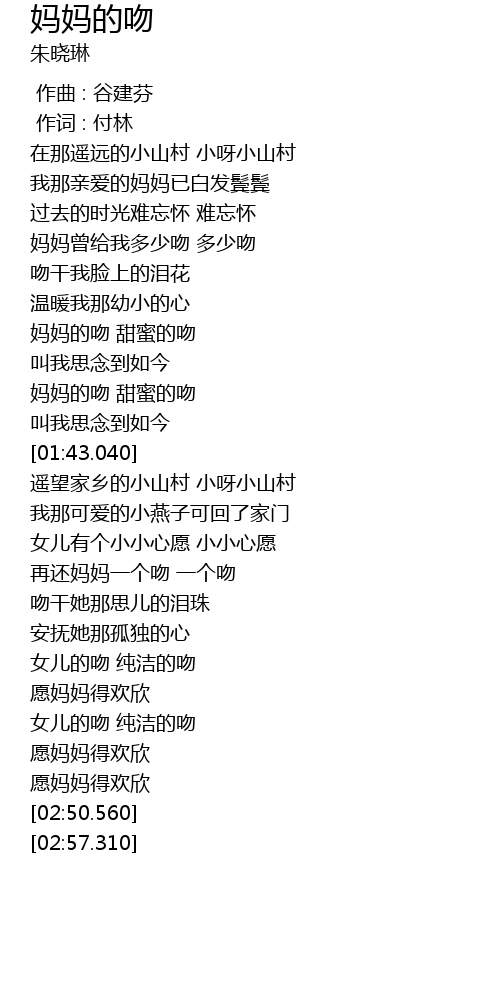 | [02:14.700] | 再还妈妈一个吻 一个吻 |