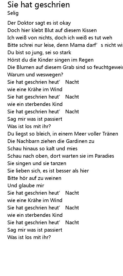 | Du liegst so bleich, in einem Meer voller Tr nen | |