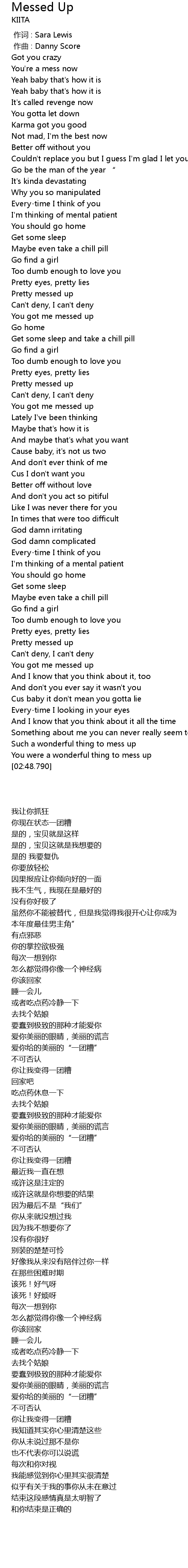 | [02:10.244] | Pretty messed up |