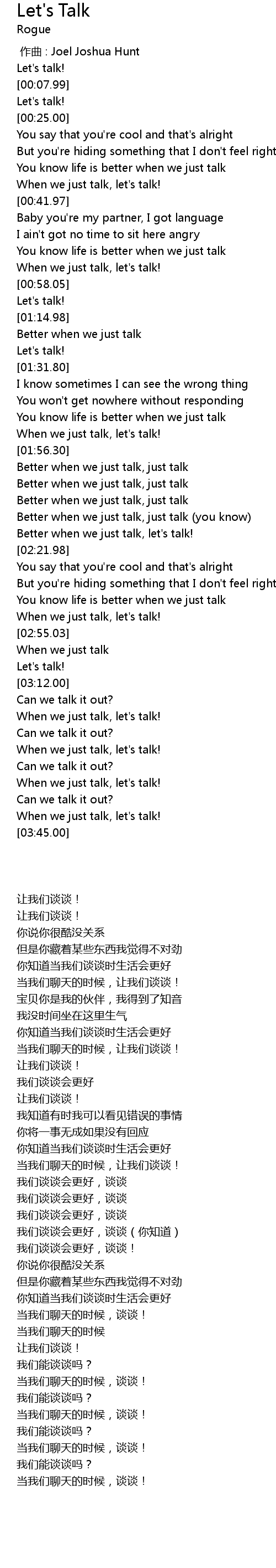 | [01:53.00] | When we just talk, let' s talk! |