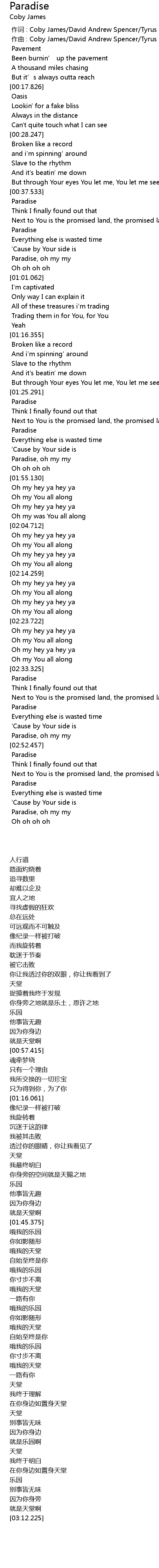 | [00:38.435] | Paradise |