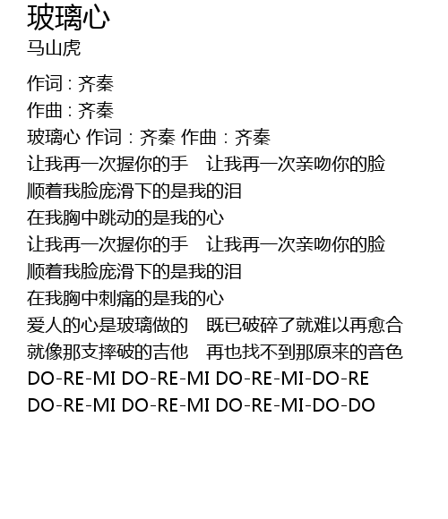 | 玻璃心 作词:齐秦 作曲:齐秦 | |
