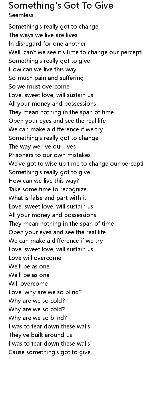 | Cause something's got to give |
