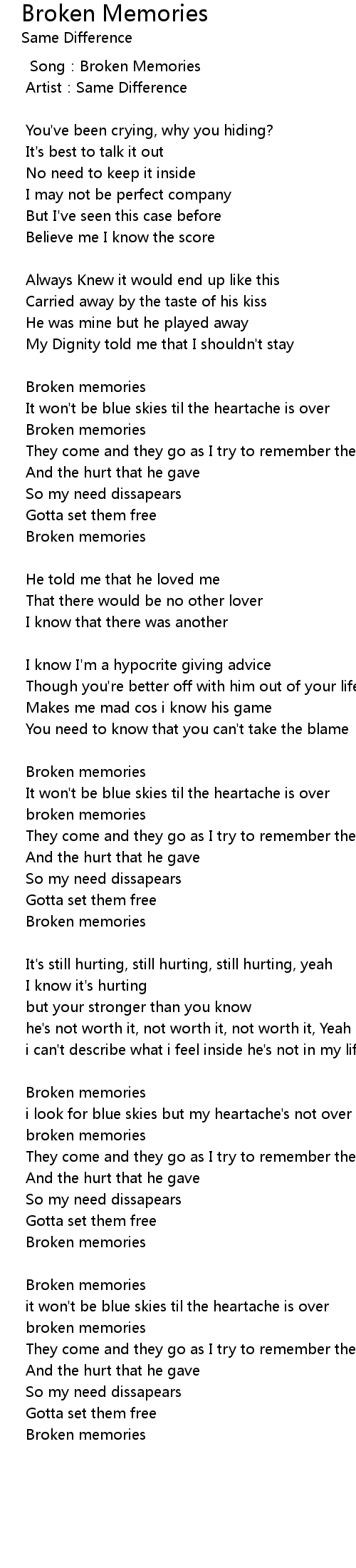 | Song | Broken Memories |