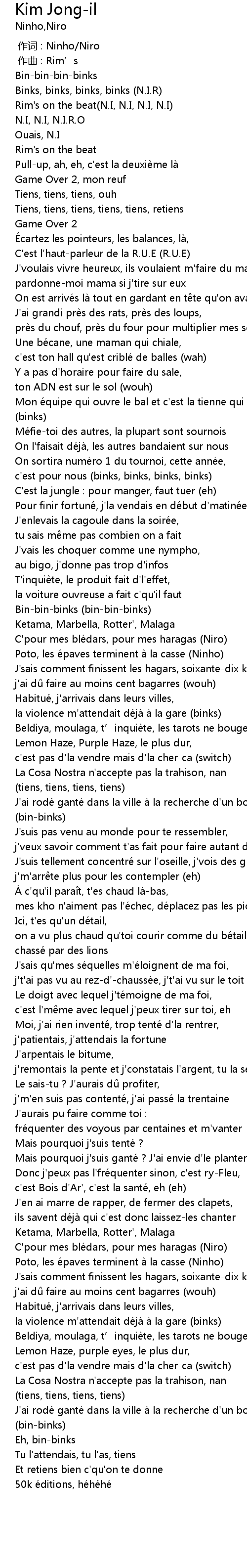 | [00:00.000] | 作词 : Ninho/Niro |
