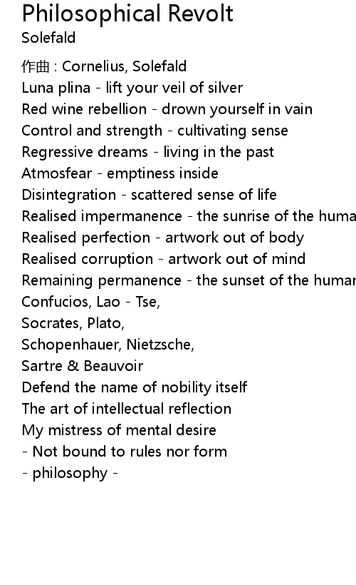 | Song | Philosophical Revolt |