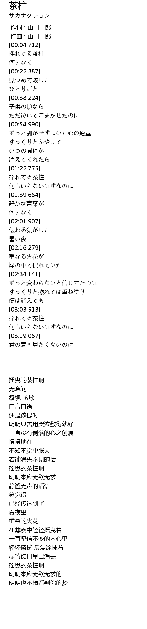 | [00:00.000] | 作词 : 山口一郎 |