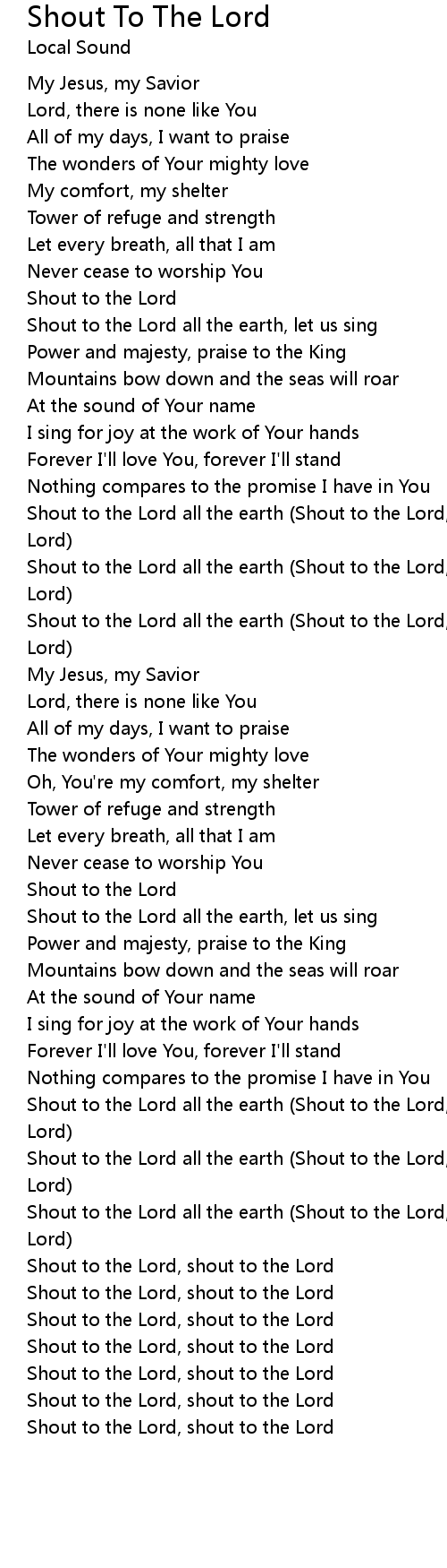 Shout to the Lord all the earth (Shout to the Lord, shout to the Lord) |