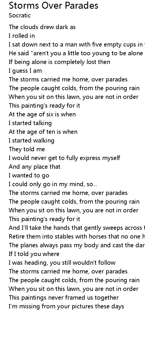 | The storms carried me home, over parades | |