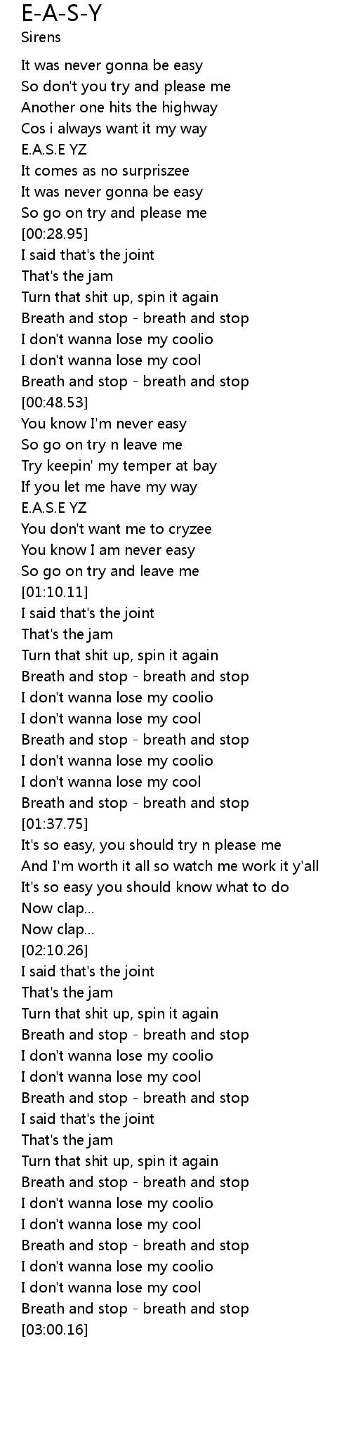 You know I'm never easy |
