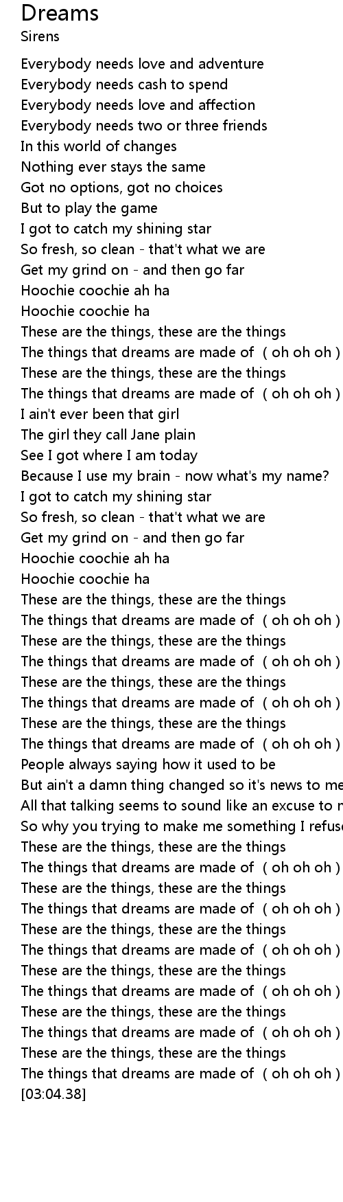 | [01:35.63] | The things that dreams are made of oh oh oh |
