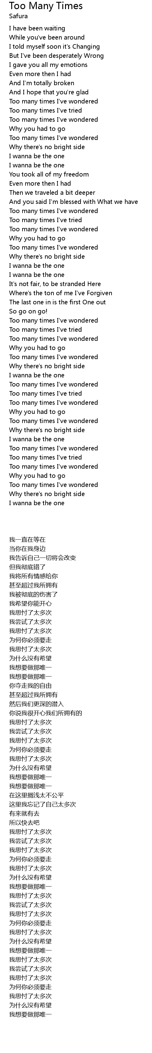Too many times I've wondered |