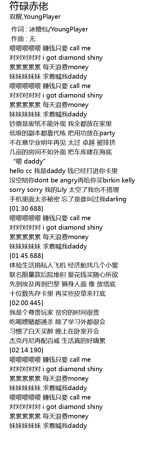 | [01:41.941] | mèi mei mèi mei mèi qiú zhe hǎn wǒ daddy |