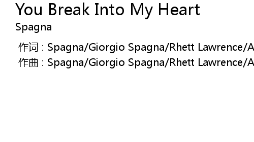 | Song | You Break Into My Heart |