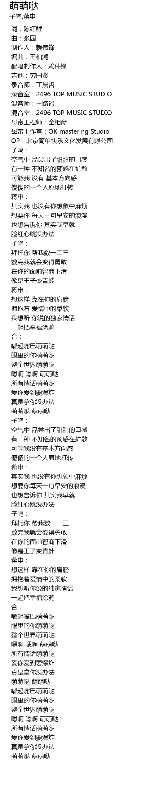 | [02:41.698] | 萌萌哒 萌萌哒 |