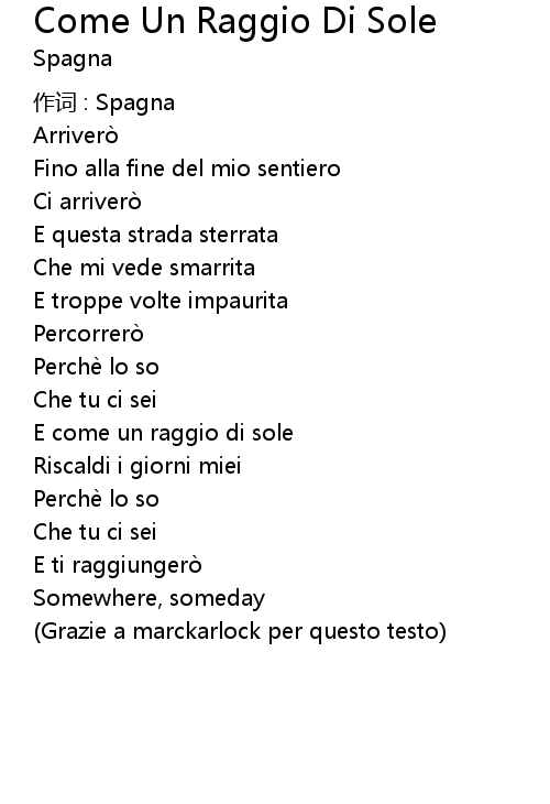 | Song | Come Un Raggio Di Sole |