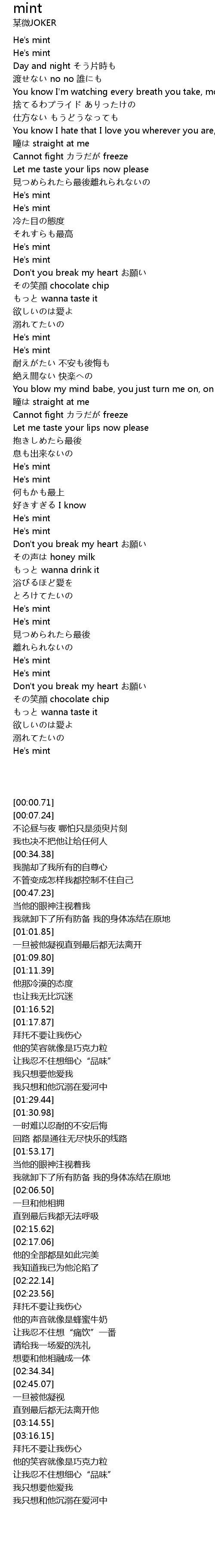 | [00:00.71] | He' s mint |